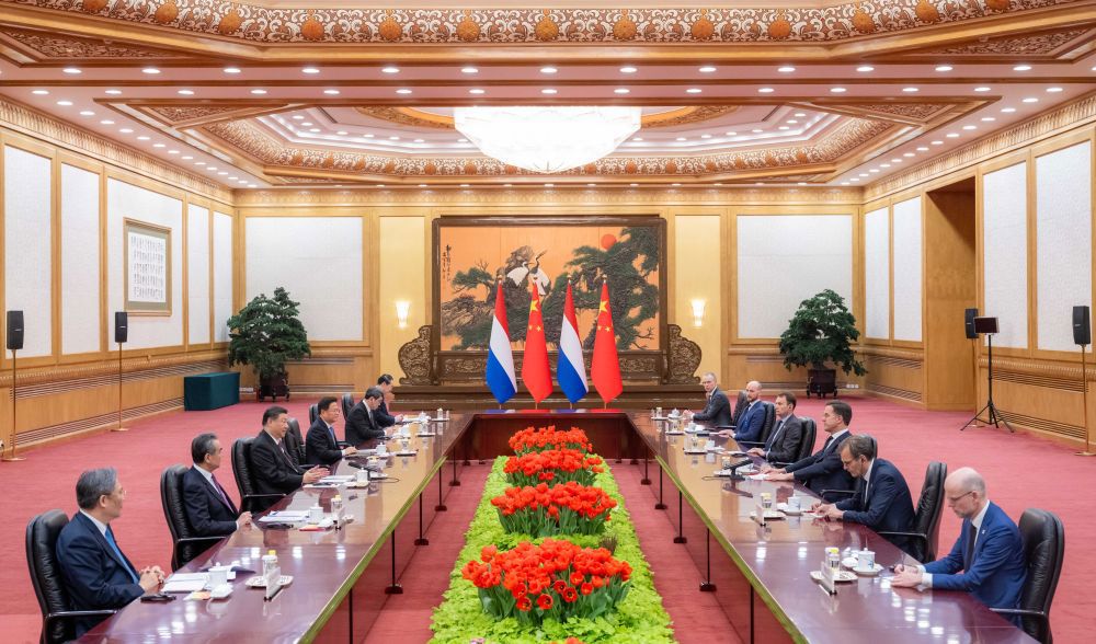 習(xí)近平指出,近年來(lái),中荷關(guān)系穩(wěn)健快速發(fā)展,兩國(guó)各領(lǐng)域合作持續(xù)深化,荷蘭已經(jīng)成為名副其實(shí)的中歐合作“門(mén)戶(hù)”。中方愿同荷方保持各層級(jí)交往,堅(jiān)持溝通對(duì)話(huà),堅(jiān)持互利共贏,推動(dòng)中荷開(kāi)放務(wù)實(shí)的全面合作伙伴關(guān)系不斷發(fā)展。中方愿擴(kuò)大荷蘭優(yōu)質(zhì)商品進(jìn)口,歡迎荷蘭企業(yè)來(lái)華投資,也希望荷方為中國(guó)企業(yè)提供公正、透明的營(yíng)商環(huán)境。雙方要積極推進(jìn)農(nóng)業(yè)、水利、能源等傳統(tǒng)合作,同時(shí)挖掘人工智能、綠色轉(zhuǎn)型、銀發(fā)經(jīng)濟(jì)等領(lǐng)域合作潛力。希望雙方繼續(xù)采取更多便利人員往來(lái)措施,鼓勵(lì)教育、文化和民間交流。中方愿同荷方加強(qiáng)在聯(lián)合國(guó)、世界貿(mào)易組織等多邊機(jī)構(gòu)的溝通協(xié)調(diào),共同應(yīng)對(duì)氣候變化、生物多樣性等全球挑戰(zhàn)。