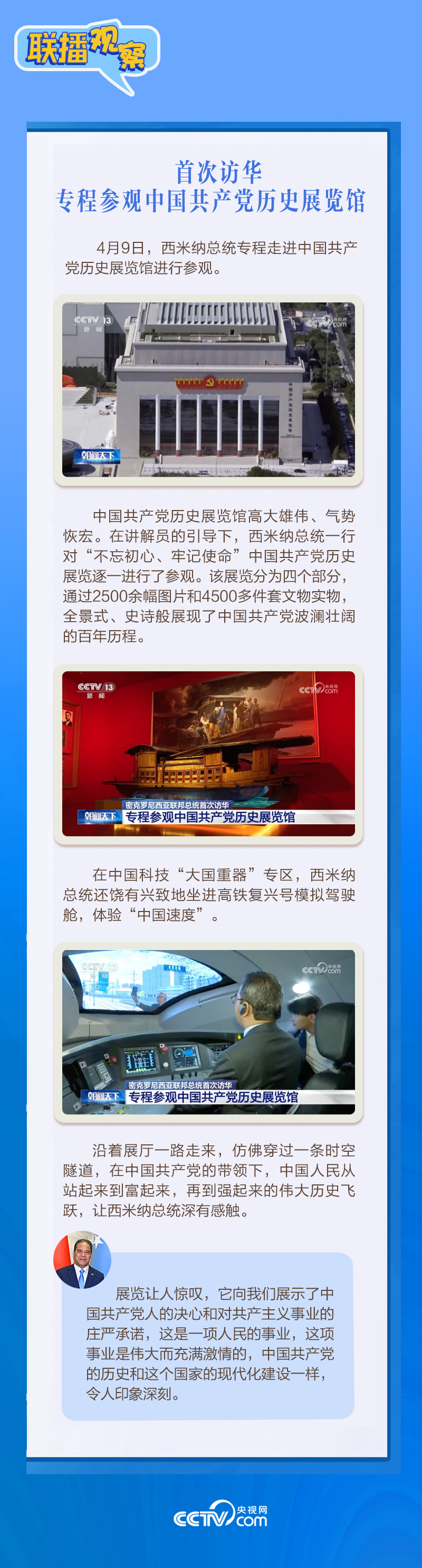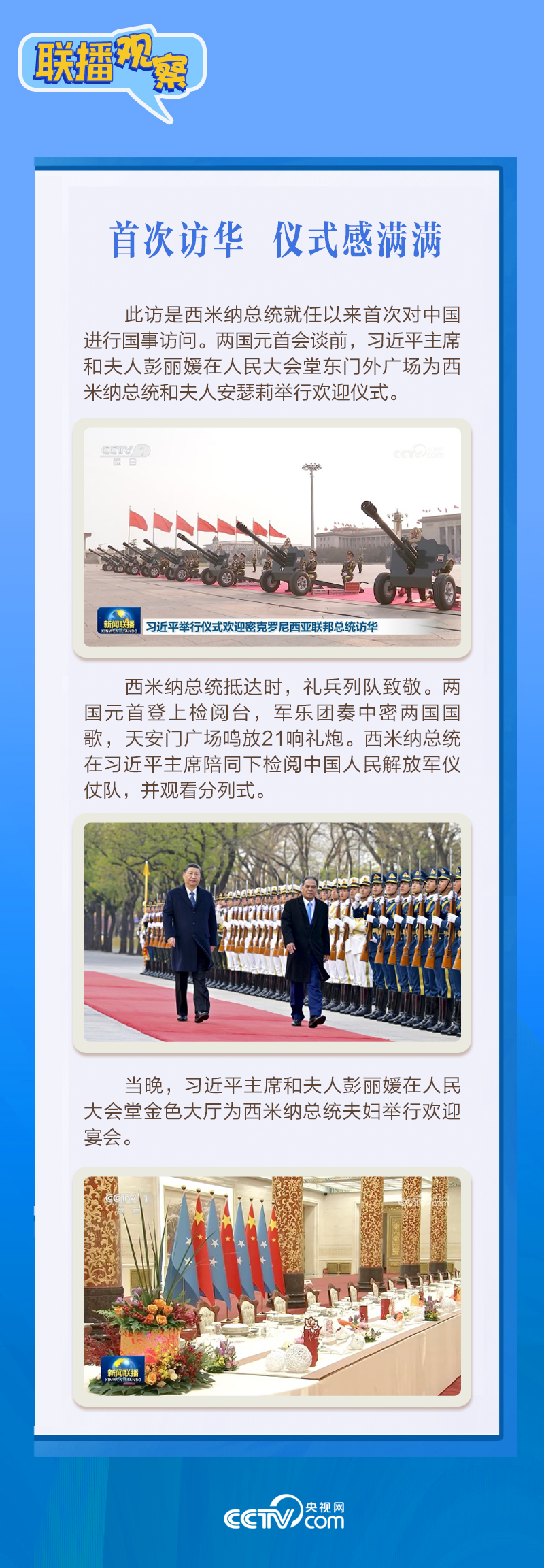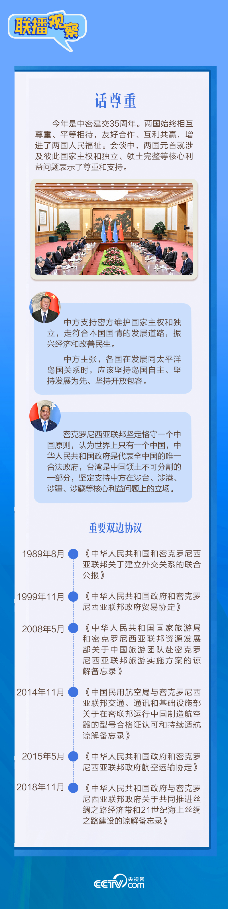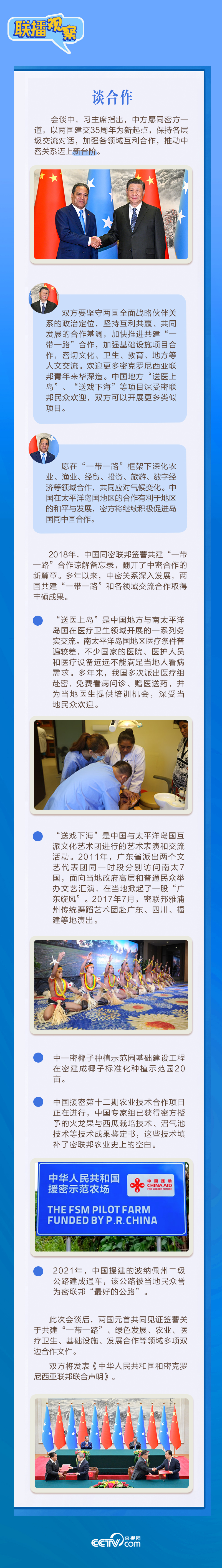 聯(lián)播+應(yīng)習(xí)近平主席邀請(qǐng),密克羅尼西亞聯(lián)邦總統(tǒng)韋斯利·西米納于4月5日至12日對(duì)中國進(jìn)行國事訪問。4月9日下午,習(xí)近平主席在北京人民大會(huì)堂同西米納總統(tǒng)舉行會(huì)談,就雙邊關(guān)系發(fā)展及共同關(guān)心的問題深入交換意見。雙方會(huì)談哪些細(xì)節(jié)值得關(guān)注?央視網(wǎng)《聯(lián)播觀察》帶您了解。