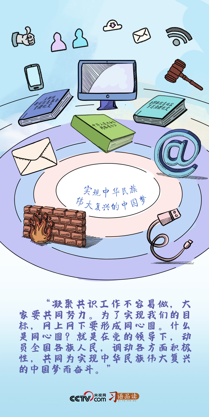 “網(wǎng)上網(wǎng)下要形成同心圓”“形成最大公約數(shù),畫出最大的同心圓”……習近平總書記曾多次用“同心圓”這一比喻指明推進網(wǎng)絡強國建設、促進網(wǎng)信事業(yè)發(fā)展的方向。