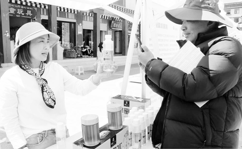 圖為公司在縣城廣場(chǎng)推銷蜂蜜水。