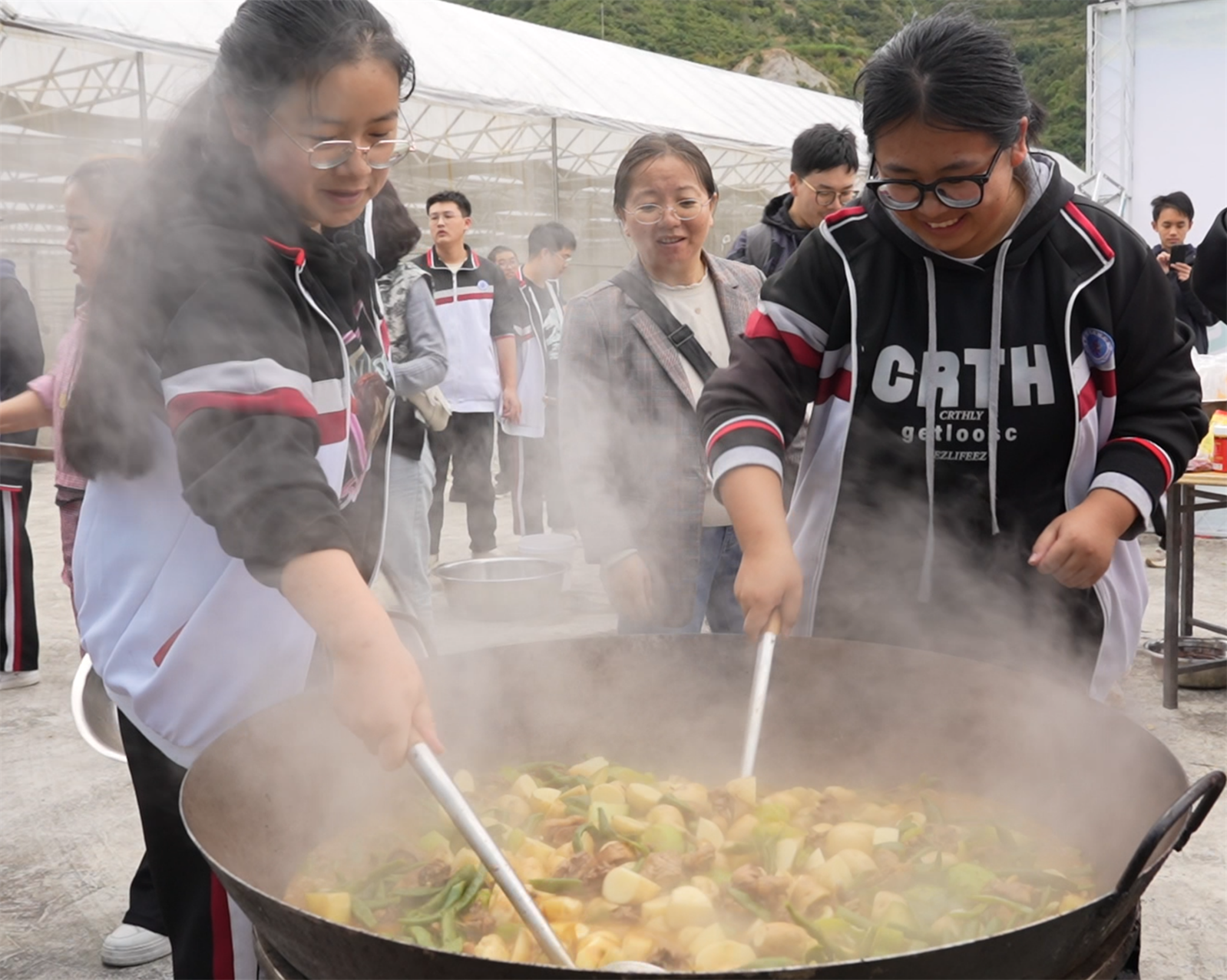 本網(wǎng)訊 “今天收獲了我們自己種的土豆,跟大家吃了壩壩宴,非常有意義,讓我體會(huì)到了一粥一飯來之不易?!睘o定中學(xué)高二3班馬灝文高興地說。