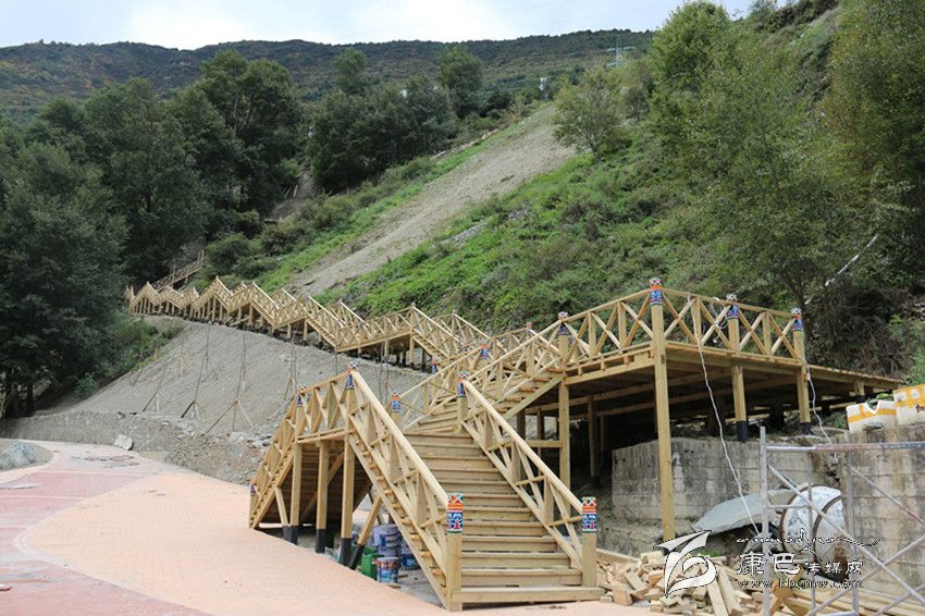 日前記者來到現(xiàn)場,實(shí)地體驗(yàn)了在建中的爐巷·文成路。從甘孜日報(bào)社到公主橋,一路上河堤已經(jīng)用漢白玉的石材建起了沿河欄桿,上面雕刻著吉祥八寶圖案。山路中還設(shè)計(jì)了一個(gè)較大的亭子,以這個(gè)亭子為中心,上通南無寺,下至將軍橋。一條藏式木制階梯長廊與白土坎村的阿里布果游道相連接,站在長廊的底端向上看階梯長廊,長廊就像一條在山間蜿蜒的巨龍,給爐巷·文成路添上了一抹神秘色彩。