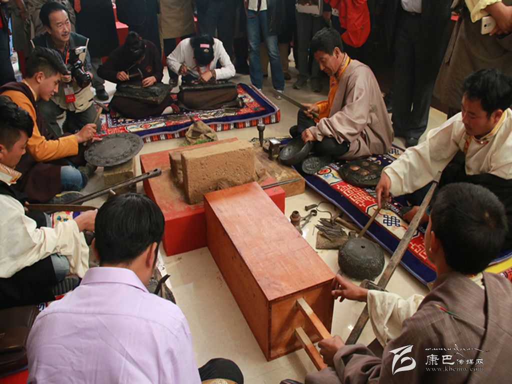 扎西是河坡藏傳手工技藝的代表性人物,7歲跟師學藝,13歲開始開辦手工作坊,從事這項手工工藝已經(jīng)20多年了。說話間,扎西自豪地向大家介紹,今天,在展廳展示手工技藝的人都是他的學生。在家鄉(xiāng)河坡鄉(xiāng)德來村幾乎家家戶戶都能打制藏刀和其他制作精美的佛具。