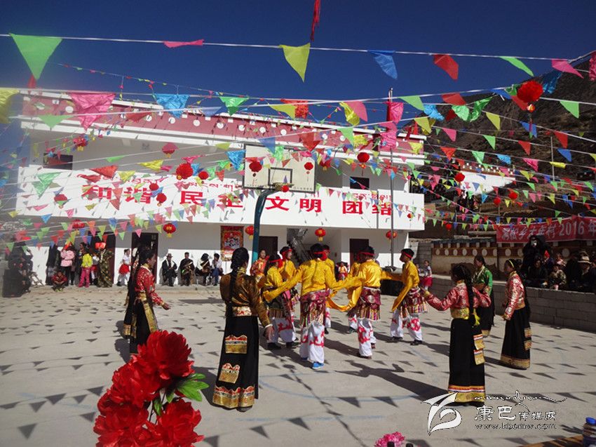 正月初八上午十點(diǎn),鄉(xiāng)城縣移民搬遷新村——太年村群眾自編自演的新年文藝節(jié)目在彩旗飄飛的村活動(dòng)室舉行,《舞動(dòng)高原》、《情滿大山》、《唱支山歌給黨聽》、《小蘋果》等近兩個(gè)小時(shí)的歌舞節(jié)目依次亮相,一位位“草根”明星輪番登臺(tái),一個(gè)個(gè)歌頌家鄉(xiāng)新風(fēng)貌、展現(xiàn)搬遷新村新風(fēng)采的節(jié)目贏得他觀眾如潮的掌聲。村民們自編的感恩黨、贊美新生活的山歌唱了一曲又一曲,精彩的節(jié)目吸引了附近鄉(xiāng)村數(shù)百人前來觀看。