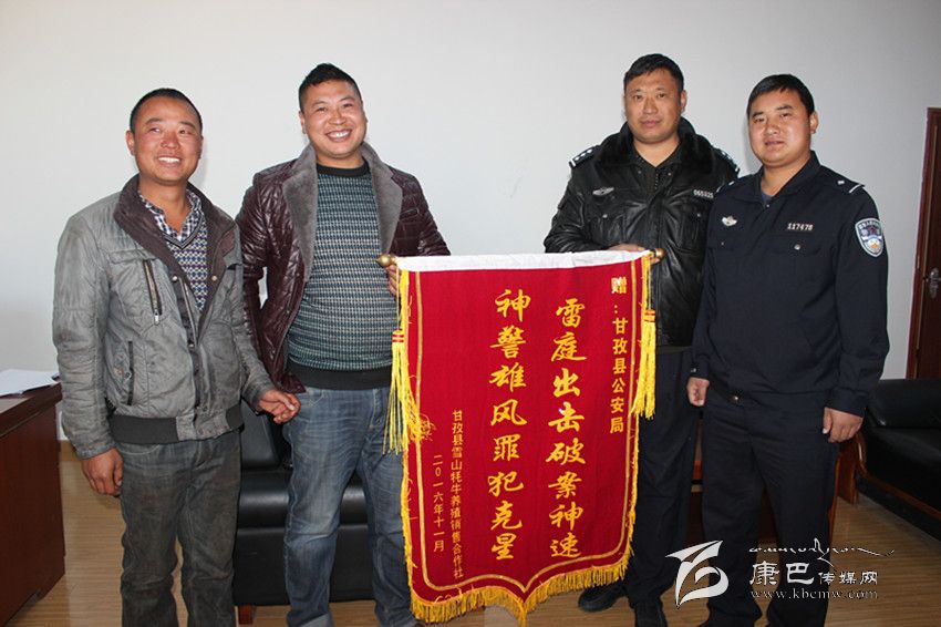 本網(wǎng)訊(余應(yīng)瓊 文/圖)11月11日,甘孜縣雪山牦牛養(yǎng)殖銷售合作社負(fù)責(zé)人鄭萬強將一面繡有“雷霆出擊破案神速 神警雄風(fēng)罪犯克星”的錦旗送到縣公安局,表達對公安干警迅速破案,幫助貧困群眾挽回經(jīng)濟損失的感激之情。