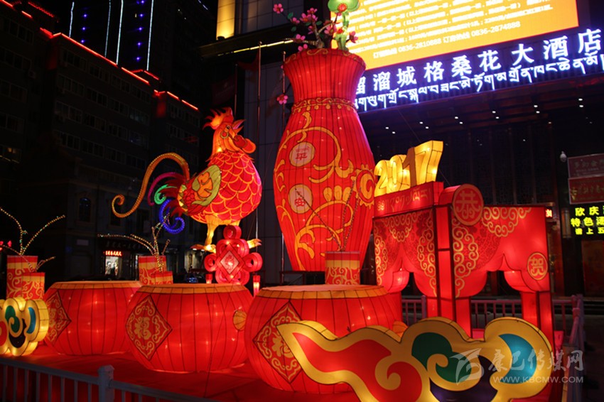 據(jù)該公司負(fù)責(zé)本次花燈設(shè)計的設(shè)計師鄭才學(xué)介紹,本次花燈每組主題不同,以全新的設(shè)計理念、歡樂祥和的氛圍、獨(dú)具特色的造型,向世人展現(xiàn)獨(dú)特的甘孜魅力。向陽橋頭的花燈主題為新春快樂,整個花燈呈火紅色,巨型“春”字搭配藏族繪畫中最常見但寓意深刻的吉祥八寶圖案,以及舞獅子、大紅燈籠、中國結(jié)等融為一體,為來到康定的客人第一時間送上熱情的新春問候;情歌廣場的花燈主題為鼓舞康定,以被譽(yù)為中國民間藝術(shù)瑰寶的大紅鼓作為人民歡慶盛世、贊美和諧的情感載體,充滿雄渾之氣,寓意著我州在時代發(fā)展的浪潮中擊鼓奮進(jìn)、得勝而鳴;情歌大廈門口的花燈主題為金雞送平安,以中國傳統(tǒng)生肖年文化為背景,配合中國結(jié)和爆竹,喜慶而不失莊重,寓意著為全州人民送去平安吉祥;將軍橋頭的花燈主題為童子賀歲,火紅的燈籠搭配喜慶的福娃及爆竹,為全州各族人民送上新年的祝福;17隊三岔路口的花燈主題為和諧康定,巨大的荷花藝術(shù)造型結(jié)合動感的LED光源,造型高低錯落,寓意和諧、和美,體現(xiàn)在州委、州政府的堅強(qiáng)領(lǐng)導(dǎo)下,人民安居樂業(yè),和諧美滿。最霸氣、最吸引人的當(dāng)屬情歌公園主題為吉祥多福的花燈,整個花燈由六個直徑一米半左右的福字燈籠,環(huán)繞一個直徑達(dá)3米左右的福字燈籠組合而成,主燈籠的燈柱高大而厚重,環(huán)繞的六個燈柱上配有吉祥八寶圖案,寓意著全州物產(chǎn)豐富,人民的生活紅紅火火,一年更比一年好。