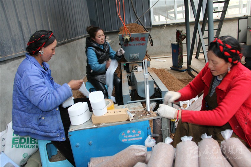 八角樓鄉(xiāng)帕姆嶺村村民帕塔志瑪已經(jīng)是熟練工了,去年9月,她被招收進(jìn)甘孜州日基農(nóng)業(yè)開發(fā)有限公司,經(jīng)過9個月的培訓(xùn)后,她實現(xiàn)了由農(nóng)民到產(chǎn)業(yè)工人的華麗轉(zhuǎn)身?!耙郧安皇炀毜臅r候,一天只能種3000多袋,現(xiàn)在可以種9000多袋,一天的收入有100元,下班后,吃住都在家里”。帕塔志瑪說,女兒在甘孜衛(wèi)校上學(xué),兒子在雅江中學(xué)上高一,兩個孩子一年的開支就要兩三萬元??伤齻円患颐磕甑慕?jīng)濟(jì)來源主要靠挖蟲草和撿松茸,還要受氣候和市場銷售影響,微薄的家庭收入,供養(yǎng)兩個孩子讀書感到力不從心。成為公司員工后,在培訓(xùn)期間,公司都按照現(xiàn)在工資的一半發(fā)放勞務(wù)費。目前,她和丈夫都在公司工作,丈夫在粉碎組(將木材磨成粉末),一天有130元的收入,夫妻倆一個月就有7000多元的收入。在蟲草季節(jié),公司還要放蟲草假,工人們可以上山挖蟲草,這樣一來,家里的經(jīng)濟(jì)收入是以前的好幾倍。