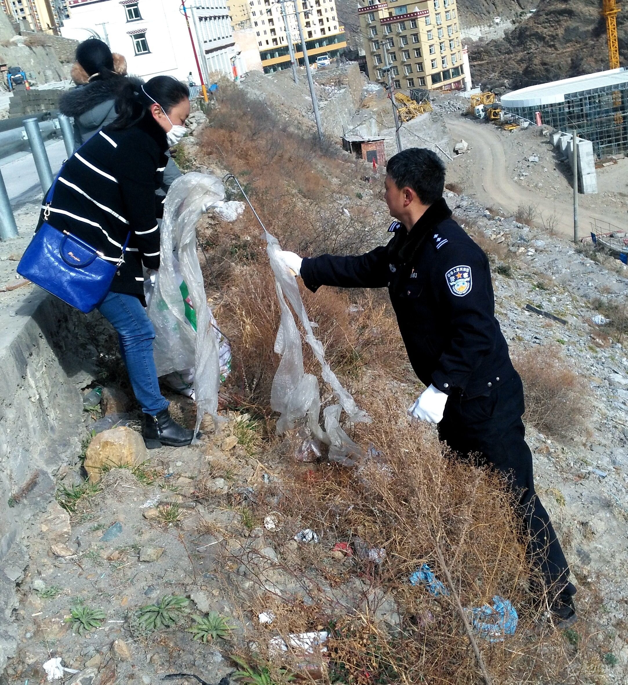 本網(wǎng)訊(金孟沙 )為響應(yīng)縣委、縣政府“潔凈美好家園,建設(shè)宜居丹巴”號(hào)召,近日,丹巴縣森林公安局黨支部組織全體黨員及志愿者開展了城區(qū)三岔河至梭坡片區(qū)后山垃圾義務(wù)清掃活動(dòng)。圖為黨員和志愿者在清掃后山垃圾。