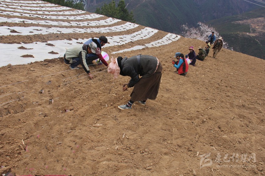 村民正按照技術(shù)員們傳授的方法點(diǎn)種。