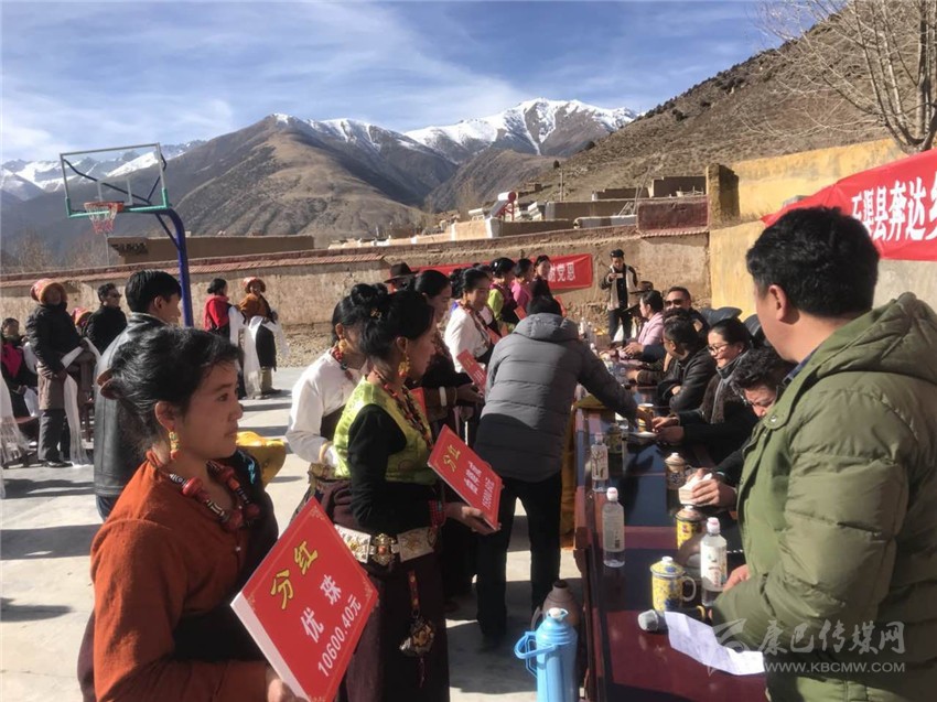 上午11時,一村支部書記其呷扎西大聲宣讀分紅金額,并依次將紅包遞到每位社員手中?!吧硤鼋ǔ珊?,不僅有扶貧產(chǎn)業(yè)周轉(zhuǎn)金入股,還有致富帶頭人帶頭干,生產(chǎn)、銷售都不用自己操心,而且在沙場干活不僅有工資,年終還能分紅,收入比起以前高了很多,我們再也不用發(fā)愁沒有門路打工掙錢了?!必毨罕姾腿牍扇罕娔弥值降募t包后高興地對筆者說。
