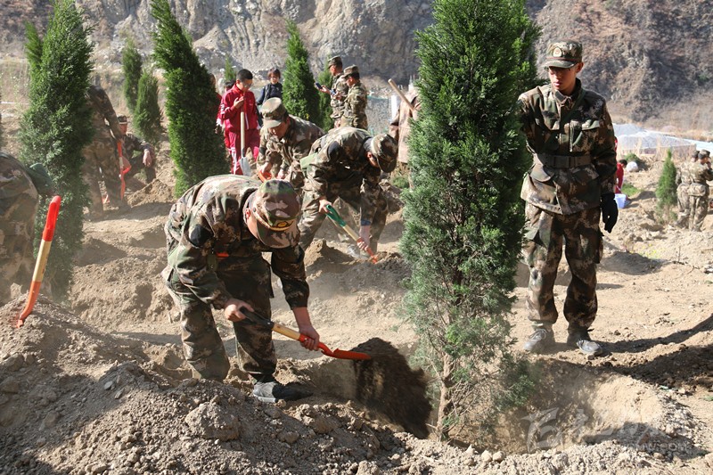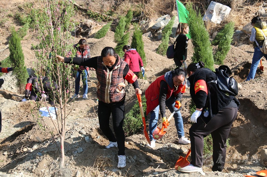 植樹(shù)現(xiàn)場(chǎng)熱火朝天。