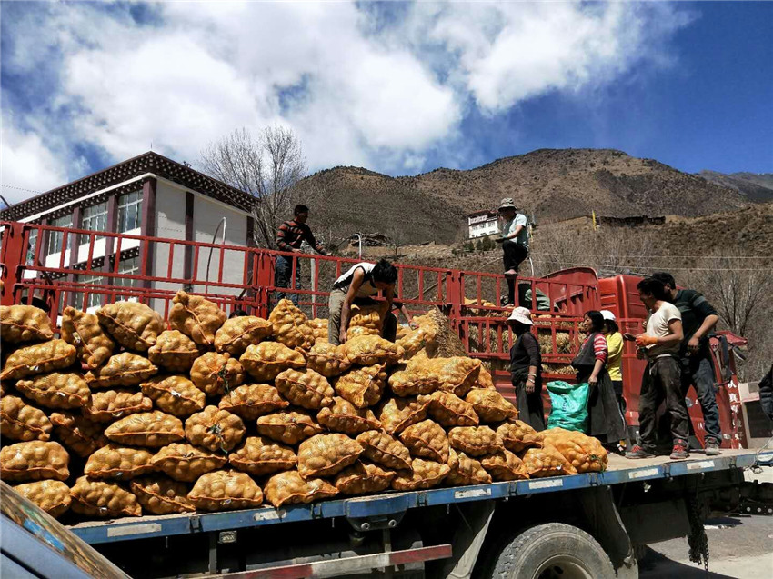 本網(wǎng)訊(新龍縣委中心報道組 安子 文/圖)“我們家的地前幾天就耕好了,第一書記讓我們等一下,縣上要給我們發(fā)種子,發(fā)高產(chǎn)量的土豆種子”新龍縣大蓋鎮(zhèn)村民高興地說。 近日,新龍縣農(nóng)牧科技局輾轉(zhuǎn)于各村各鄉(xiāng)鎮(zhèn),為農(nóng)牧民群眾發(fā)放土豆良種,沙堆鄉(xiāng)、大蓋鎮(zhèn)、樂安鄉(xiāng)、繞魯鄉(xiāng)、色威鄉(xiāng)、如龍鎮(zhèn)等8個摘帽村共90噸土豆良種已發(fā)放。同時,縣農(nóng)牧科技局工作人員現(xiàn)場作了技術(shù)培訓(xùn),向群眾介紹土豆種植要點。縣農(nóng)牧科技局負責人表示,近幾年隨著國家對農(nóng)業(yè)支持力度的加大,農(nóng)村惠民政策越來越多,老百姓切實感受到了良種帶來增產(chǎn)的實惠,對良種發(fā)放以及種植工作非常支持。下一步將繼續(xù)發(fā)放青稞、油菜等種子以及肥料,并且常態(tài)化開展種植、施肥等方面的技術(shù)指導(dǎo),切實讓群眾增收致富。