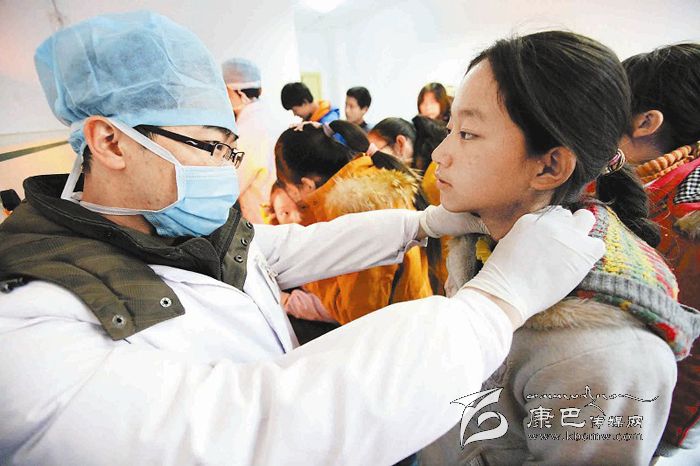 醫(yī)療隊(duì)正在為學(xué)生體檢。
