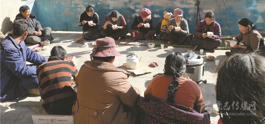 “請(qǐng)注意腳下哈,不要絆倒了喲!你們把這趟搬了就過(guò)來(lái)吃午飯,等吃完飯后再搬?!惫P者在金沙鄉(xiāng)八吉村采訪時(shí),親眼目睹了十幾個(gè)忙碌的身影穿梭在一頂帳篷與院壩之間。一經(jīng)打聽,原來(lái)是村民扎西多吉的親戚和鄰居在幫他搬運(yùn)柴火。
