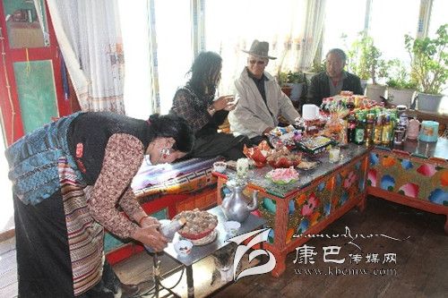 說(shuō)話間,聽(tīng)見(jiàn)女兒四郎曲珍和媽媽從廚房里端著牛肉包子走了出來(lái)。廚房里冰箱、高壓電飯煲等家用電器一應(yīng)俱全,他興激動(dòng)地說(shuō):“現(xiàn)在,縣上大力實(shí)施農(nóng)村的五通工程,用電也十分方便;以前打酥油茶都用木桶,現(xiàn)在有高原專用的打茶機(jī),既快捷又方便;……”