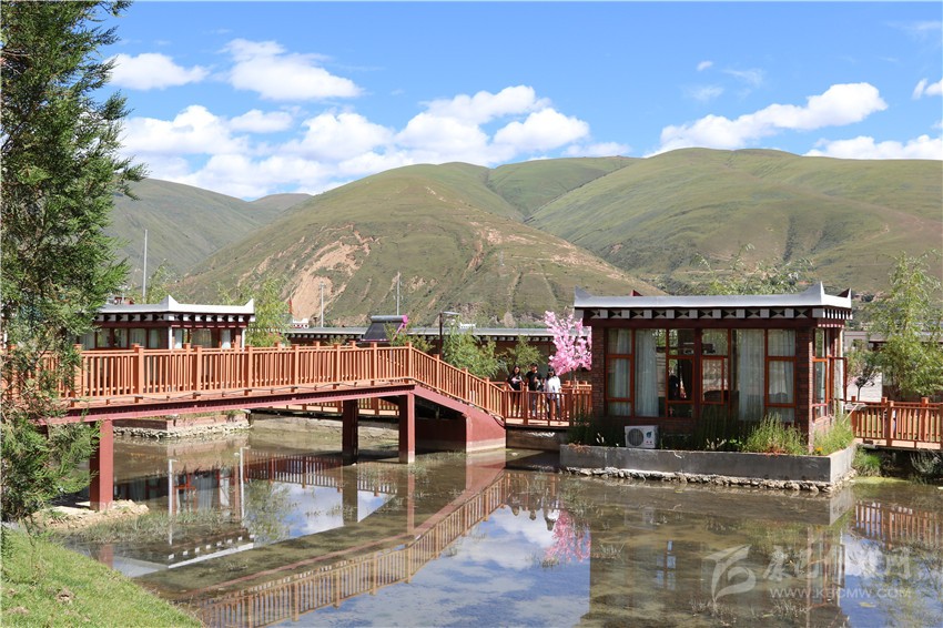 走進(jìn)山莊,一排排仿道孚民居外觀的房子整齊排列掩映在柳樹間,四面落地玻璃窗的設(shè)計讓陽光溫暖整個房間,潺潺的小溪縈繞其間,不遠(yuǎn)處蒼措嘎布海子的蘆葦叢在微風(fēng)中輕輕擺動,幾只野鴨子在水上嬉戲,特色民居增加了民族韻味,漫步木制棧道,眼前呈現(xiàn)出美麗鄉(xiāng)村的畫卷。