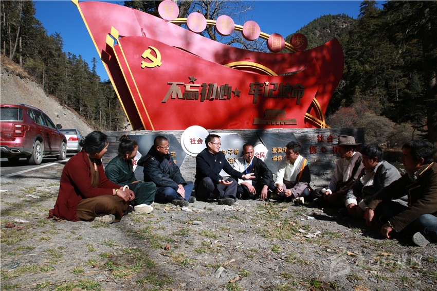 11月20日,記者乘坐的采訪車從稻城亞丁景區(qū)入口方向拐了個(gè)彎,沿著平坦的柏油路前行了26公里,木拉鄉(xiāng)麻格同村便映入眼簾,一塊黨旗造型的文化墻上寫著“不忘初心、牢記使命”幾個(gè)大字,墻體下方刻有社會(huì)主義核心價(jià)值觀內(nèi)容,讓人眼前一亮。幾個(gè)村民圍坐在一起,商量著什么。記者停車詢問得知,四川旅投集團(tuán)駐村干部王雷正在和村“兩委”以及部分村民代表,商議動(dòng)工修建棧道,為游客開展馬幫服務(wù)的事情。