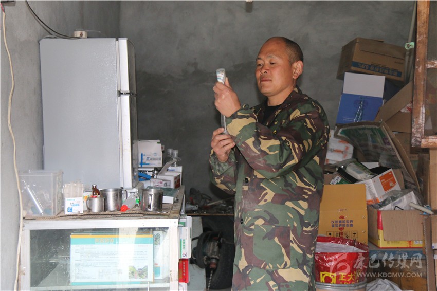 何建兵正在配藥。