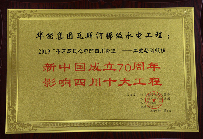 作為在國內(nèi)產(chǎn)生巨大影響的四川境內(nèi)的標志性工程,2019年10月,瓦斯河梯級水電工程成功入選“新中國成立70周年影響四川十大工程”工業(yè)與科技榜。