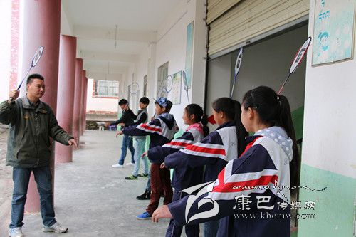 關(guān)軼為校羽毛球隊(duì)做現(xiàn)場輔導(dǎo)。