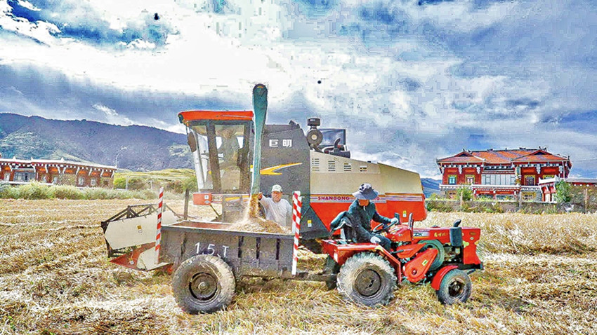本網(wǎng)訊 春種一粒粟,秋收萬顆子。眼下正是秋收關鍵時刻,作為道孚縣最大的黑青稞“糧倉”孔色鄉(xiāng)昌孜村把秋收工作作為頭等大事,多措并舉、掛圖作戰(zhàn),人機齊動搶農(nóng)時,加快糧食搶收進度,確保應收盡收。