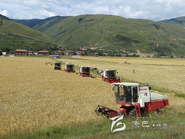 本網(wǎng)訊(胡筱紅 龍正芳 文/圖) 高原的八月是絢麗多彩的時節(jié),是糧食收獲的季節(jié)。爐霍縣300畝全程機(jī)械化青稞作業(yè)示范片項目機(jī)收工作于8月20日正式啟動,共出動大型聯(lián)合收割機(jī)5臺、拖拉機(jī)5臺同時作業(yè),正常情況下一臺收割機(jī)一天可以收割65至70畝,青稞示范片不出5天就能完成收割。對比以往的種植和收獲方式,全程機(jī)械化作業(yè)從播種到收獲帶來的社會效益及經(jīng)濟(jì)效益都遠(yuǎn)遠(yuǎn)高于傳統(tǒng)種植方式。