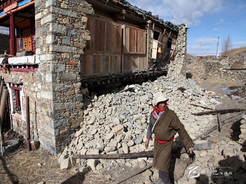 該村不少舊式藏居已經徹底倒塌,瓦礫遍地。正在幫助村民搭建帳篷的中古村包村干部劉怡說,全村共189戶村民,125戶有房,受災110棟房,其中五組受災最嚴重,31戶房屋倒塌。這個村當年沒有被納入牧民定居建設。