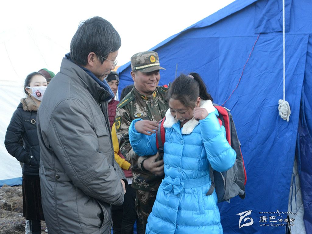 由于受此次地震影響,西康福利學(xué)校的孩子們已經(jīng)放假回到親戚家寄宿。塔公救災(zāi)一線的官兵們利用休息時(shí)間,向胡忠仔細(xì)打聽(tīng)5個(gè)孤兒的身高和臨時(shí)住址,大家主動(dòng)集資專(zhuān)門(mén)采購(gòu)了羽絨服、書(shū)包、文具和米面油等物資。10日下午,官兵們?cè)谖骺蹈@麑W(xué)校老師的陪同下,驅(qū)車(chē)百余公里,先后深入到塔公鎮(zhèn)江巴村、多拉一村、各日馬村、下馬龍村和朋布西鄉(xiāng)奪讓村,跨河溝、爬山坡,鉆帳篷、進(jìn)板房,提著新買(mǎi)的衣服、書(shū)包,扛著米面,逐一走訪這些孤兒所寄宿的家,勉勵(lì)他們?cè)诶Ь持凶詮?qiáng)不息,努力學(xué)習(xí),為自己的夢(mèng)想而頑強(qiáng)拼搏,并與孤兒所寄宿的親戚細(xì)心溝通交流,囑咐他們照顧好可憐的孩子,有困難找武警,大家齊心協(xié)力為孤兒創(chuàng)造一個(gè)溫暖的家,為孤兒的成長(zhǎng)成才盡最大的努力。