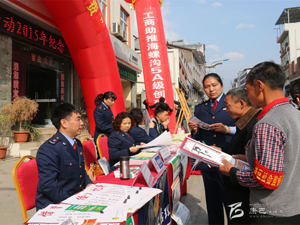 本網(wǎng)訊(州工商局 文/圖)為貫徹州政府5A級景區(qū)創(chuàng)建工作推進會議精神,州工商局積極謀劃、主動作為,以“3·15國際消費者權益日”紀念活動為契機,以走進海螺溝景區(qū)、貼近民營經(jīng)濟為載體,全力助推海螺溝5A景區(qū)創(chuàng)建工作。