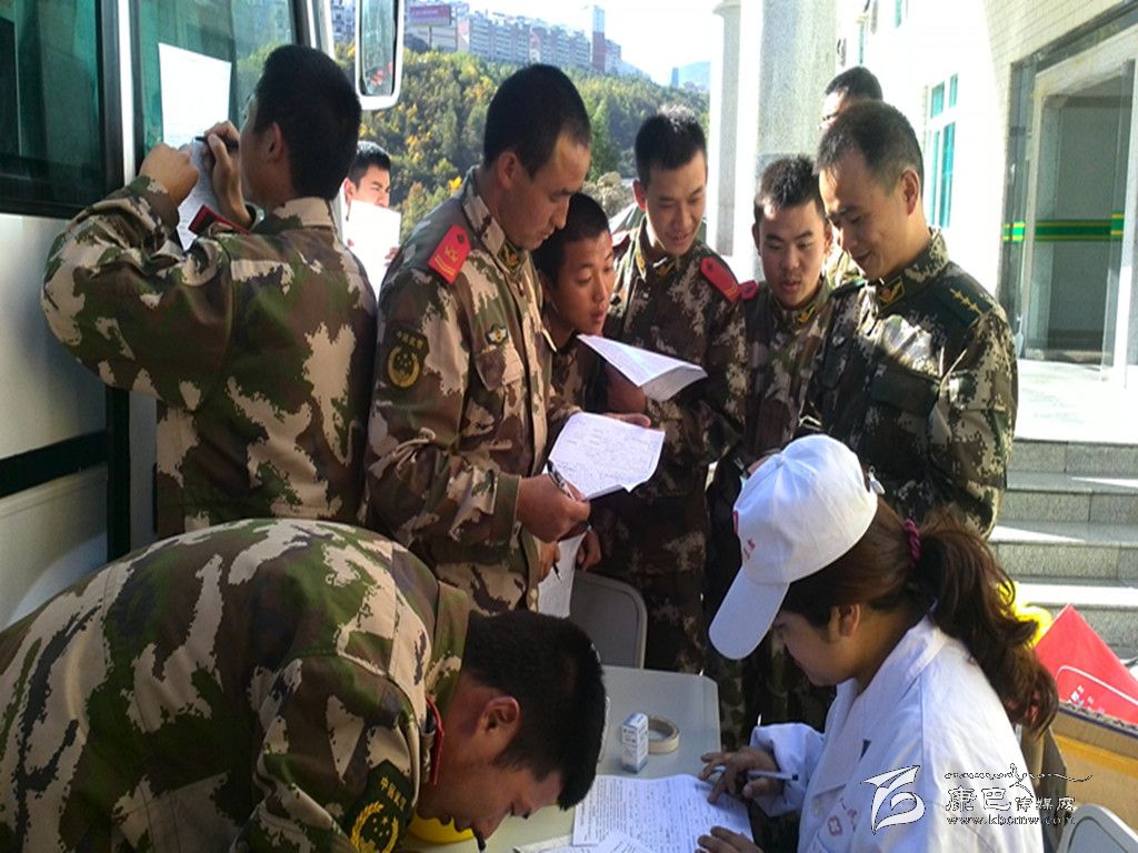 甘孜軍分區(qū)官兵無(wú)償獻(xiàn)血。
