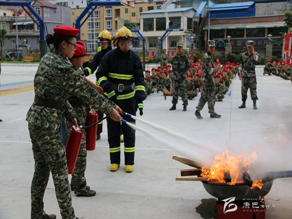 為使參訓(xùn)學(xué)生更好地將此次學(xué)習(xí)到的消防知識融于實踐,消防部門還在校園操場,組織參訓(xùn)學(xué)生開展了油盆火災(zāi)撲救,現(xiàn)場學(xué)生紛紛踴躍報名,現(xiàn)場氣氛十分活躍。在消防官兵的指導(dǎo)下,學(xué)生們分為三組,利用手提式干粉滅火器進行了油盆火災(zāi)撲救演練,提瓶、拔銷、對根、壓柄一氣呵成,火勢被順利撲滅。隨后,消防官兵又向?qū)W生們演示了單干線出兩支水槍滅火操,并介紹了甘孜州最尖端的消防車輛器材及裝備,組織參訓(xùn)新生進行了一場32米登高平臺車高空作業(yè)體驗。按照操作規(guī)程,消防官兵協(xié)助參加體驗的學(xué)生戴好防護頭盔,扎上綁有安全繩的防護腰帶,順利登上了登高平臺。在消防官兵嫻熟的操作技術(shù)下,登高平臺勻速上升到20米高空,現(xiàn)場傳來了一陣陣驚嘆聲。