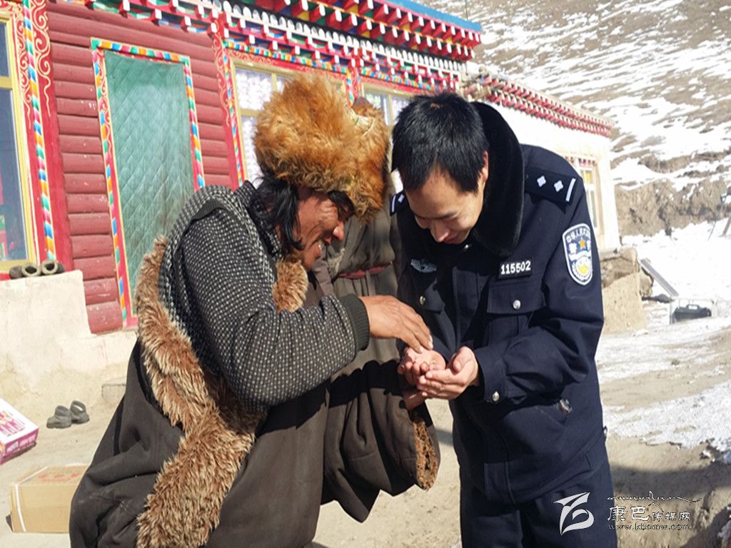 一月的扎溪卡草原大雪飄飄,氣溫降到了零下,州公安局結(jié)對(duì)認(rèn)親小分隊(duì)的民警們不顧嚴(yán)寒,在春節(jié)和藏歷新年即將來(lái)臨之際,帶著黨委政府的問候、帶著州公安局黨委和全局民警職工的一片心意,驅(qū)車千里,來(lái)到被譽(yù)為生命禁區(qū)的石渠縣格孟鄉(xiāng)走訪慰問,小分隊(duì)的民警們遠(yuǎn)遠(yuǎn)地就看見“親戚”們排著長(zhǎng)隊(duì),拿著哈達(dá)在風(fēng)雪中等候,當(dāng)小分隊(duì)民警來(lái)到他們面前時(shí),老村支書拉著小分隊(duì)民警的手激動(dòng)地說:“快過春節(jié)了,天這么冷,還下著雪,路又那么遠(yuǎn),你們還要來(lái)看我們,還帶來(lái)那么多慰問品,太感謝了!感謝黨!感謝政府!感謝州公安局!還有我們的公安民警。”