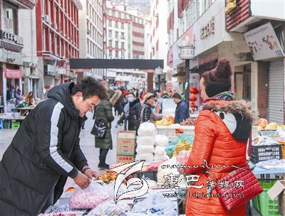 2月3日,記者在丹巴縣嘉絨步行街看到,商店門(mén)口年貨琳瑯滿(mǎn)目,透出濃濃的節(jié)日喜慶氣氛。到嘉絨步行街購(gòu)置年貨,已成為許多“老丹巴”多年的習(xí)慣。