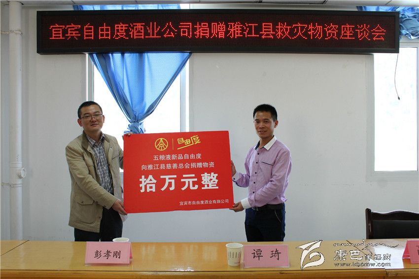 會上,彭孝剛代表宜賓自由度酒業(yè)有限公司向雅江縣慈善總會捐贈了包括救災(zāi)帳篷、棉被等價(jià)值10萬元的物資。
