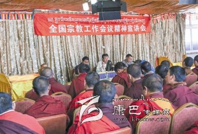 本網(wǎng)訊 (記者 田杰 陳楊 馬建華 文/圖)為廣泛深入宣傳好全國(guó)宗教工作會(huì)議精神,讓全州各族干部群眾和廣大僧尼準(zhǔn)確把握黨的宗教工作基本方針,實(shí)現(xiàn)習(xí)近平總書(shū)記“導(dǎo)”之有方、“導(dǎo)”之有力、“導(dǎo)”之有效的要求,全面貫徹黨的宗教信仰自由政策,依法管理宗教事務(wù),堅(jiān)持獨(dú)立自主自辦原則,積極引導(dǎo)宗教與社會(huì)主義社會(huì)相適應(yīng)。5月26日,州委“藏漢雙語(yǔ)宣講團(tuán)”深入色達(dá)縣喇榮寺五明佛學(xué)院集中宣講全國(guó)宗教工作會(huì)議精神。