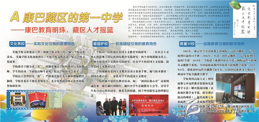 輝煌業(yè)績(jī)俱往矣,而今邁步從頭越。康定中學(xué)成功創(chuàng)建四川省一級(jí)示范性普通高中,康定中學(xué)歷史翻入新的一頁(yè)。學(xué)校將圍繞“建盛德實(shí)學(xué)康中校,做豪邁和美康中人”的“康中夢(mèng)”,把康中打造成全州基礎(chǔ)教育窗口、全省中學(xué)教育名校、全國(guó)藏區(qū)教育典范。