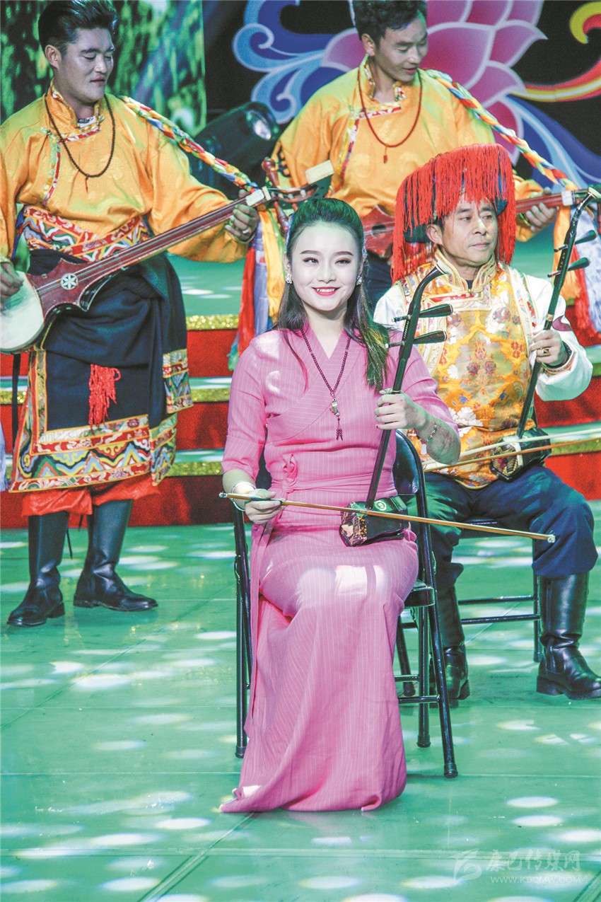 歌曲聯(lián)唱《百花爭(zhēng)艷》,是演出中第一個(gè)讓觀眾們大呼過癮的節(jié)目,年僅5歲的澤仁拉姆用一首藏族原生態(tài)歌曲《故鄉(xiāng)》,讓全場(chǎng)觀眾耳目一新。緊隨而來的藏族山歌《家鄉(xiāng)美》、漢族歌曲《和諧大家園》、回族歌曲《花兒與少年》、彝族歌曲《 尼雨尼杰》將音樂的魅力逐級(jí)顯現(xiàn),最后在經(jīng)典歌曲《愛我中華》中急速升華。6首歌曲風(fēng)格各異,卻又一氣呵成,不僅集中展示了我州藏、漢、回、彝四個(gè)民族的藝術(shù)風(fēng)采,還生動(dòng)展現(xiàn)了我州各族人民其樂融融、團(tuán)結(jié)進(jìn)步的和諧面貌。