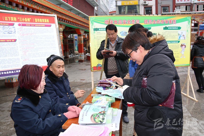 本網(wǎng)訊(記者 宋志勇 文/圖)2月27日,由州食藥監(jiān)局組織開(kāi)展的《四川省食品小作坊、小經(jīng)營(yíng)店及攤販管理?xiàng)l例》集中宣傳活動(dòng)在康定情歌廣場(chǎng)舉行,此次活動(dòng)以“食品安全、百姓安康”為主題,大力推進(jìn)食品安全知識(shí)宣傳和食品安全法律知識(shí)普及,提高廣大人民群眾食品安全科學(xué)消費(fèi)水平和監(jiān)督抵制問(wèn)題食品的能力。