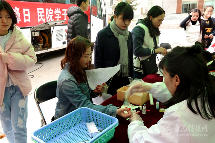 2月中旬,學(xué)院尚未開(kāi)學(xué),大學(xué)生志愿服務(wù)總隊(duì)便開(kāi)始了本次活動(dòng)的策劃和籌備,主動(dòng)與州中心血站進(jìn)行銜接,在學(xué)院內(nèi)運(yùn)用網(wǎng)絡(luò)新媒體等方式,向全院師生作無(wú)償獻(xiàn)血宣傳動(dòng)員。3月4日一大早,志愿者們就來(lái)到了指定地點(diǎn)做好準(zhǔn)備工作。獻(xiàn)血車(chē)到達(dá)后,志愿者們有序地為獻(xiàn)血的同學(xué)提供咨詢(xún)、指導(dǎo)填表、引導(dǎo)獻(xiàn)血和派發(fā)獻(xiàn)血證和紀(jì)念品等服務(wù)。本該是陽(yáng)春三月,但春天卻遲遲不肯到來(lái),凍雨仍然淅淅瀝瀝下個(gè)不停,前來(lái)獻(xiàn)血的同學(xué)不顧寒風(fēng)凜冽,在征詢(xún)處和獻(xiàn)血車(chē)外排起了長(zhǎng)長(zhǎng)的隊(duì)伍。許多同學(xué)距離上一次獻(xiàn)血還沒(méi)滿(mǎn)半年時(shí)間,也加入了獻(xiàn)血者的隊(duì)伍,血站工作人員只能委婉拒絕。面對(duì)這些熱心的獻(xiàn)血者,在大學(xué)生志愿者服務(wù)總隊(duì)記者的采訪(fǎng)中,一位同學(xué)笑著回答:“獻(xiàn)血既可以幫助他人,對(duì)自己健康也有好處,何樂(lè)而不為呢?”她揮著小拳頭:“再說(shuō)了,今天是雷鋒日,我也要爭(zhēng)當(dāng)民院小雷鋒!”