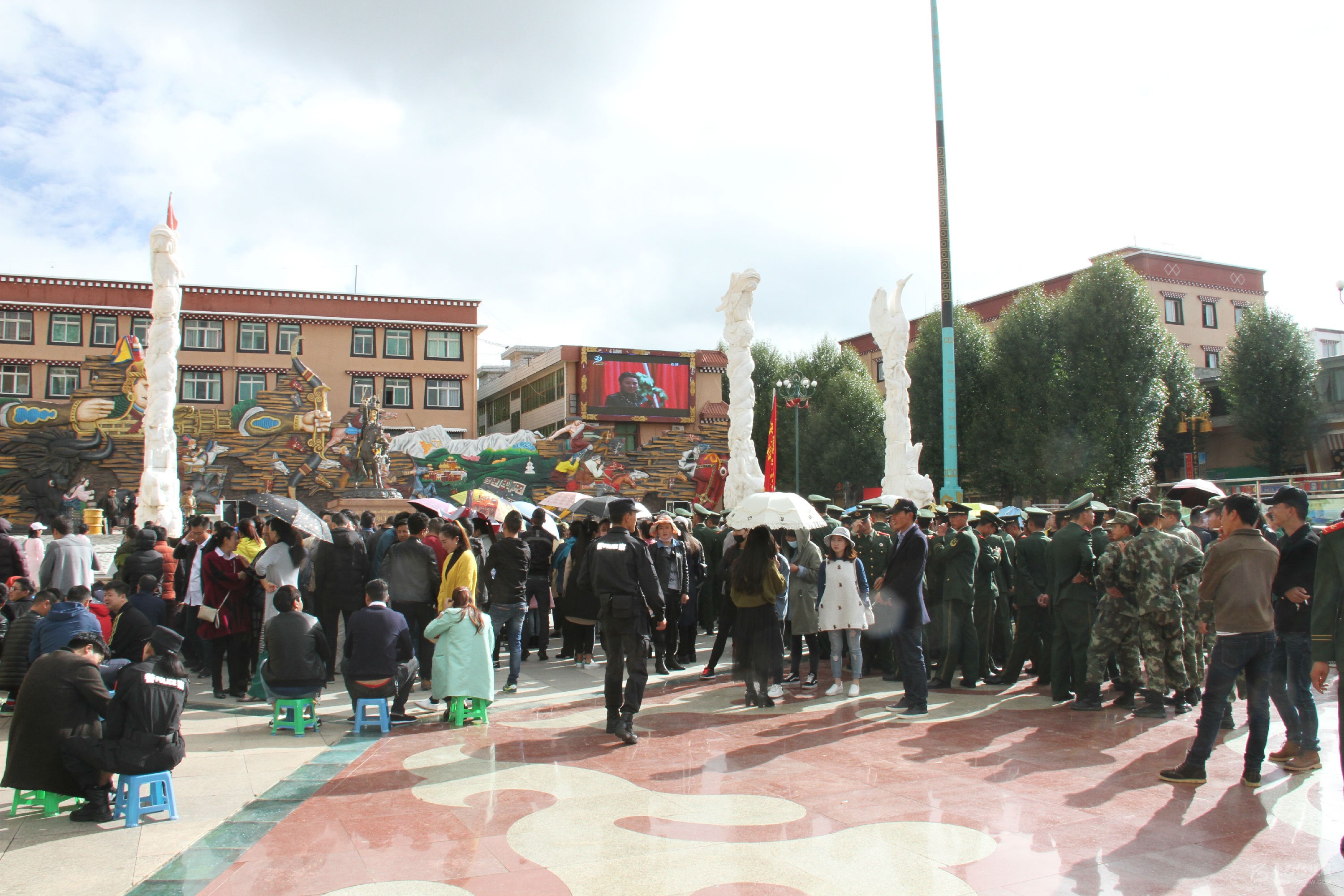 理塘縣格薩爾廣場上近千名干群收看大會(huì)盛況。