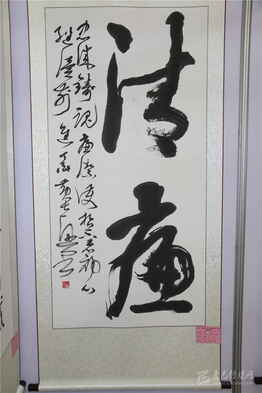 在展覽大廳,參觀者絡(luò)繹不絕,有的對書法情有獨(dú)鐘;有的對繪畫特別喜愛,都情不自禁用手機(jī)拍下這精美的書畫作品?!盀榉e極參與‘喜迎黨的十九大?弘揚(yáng)清風(fēng)正氣’主題廉政書畫展,經(jīng)過精心準(zhǔn)備,創(chuàng)作出這幅‘清廉’為主題的作品,旨在頌揚(yáng)我州廉政文化建設(shè)?!眮碜灾菸M織部的作者黃長興激動(dòng)地說。