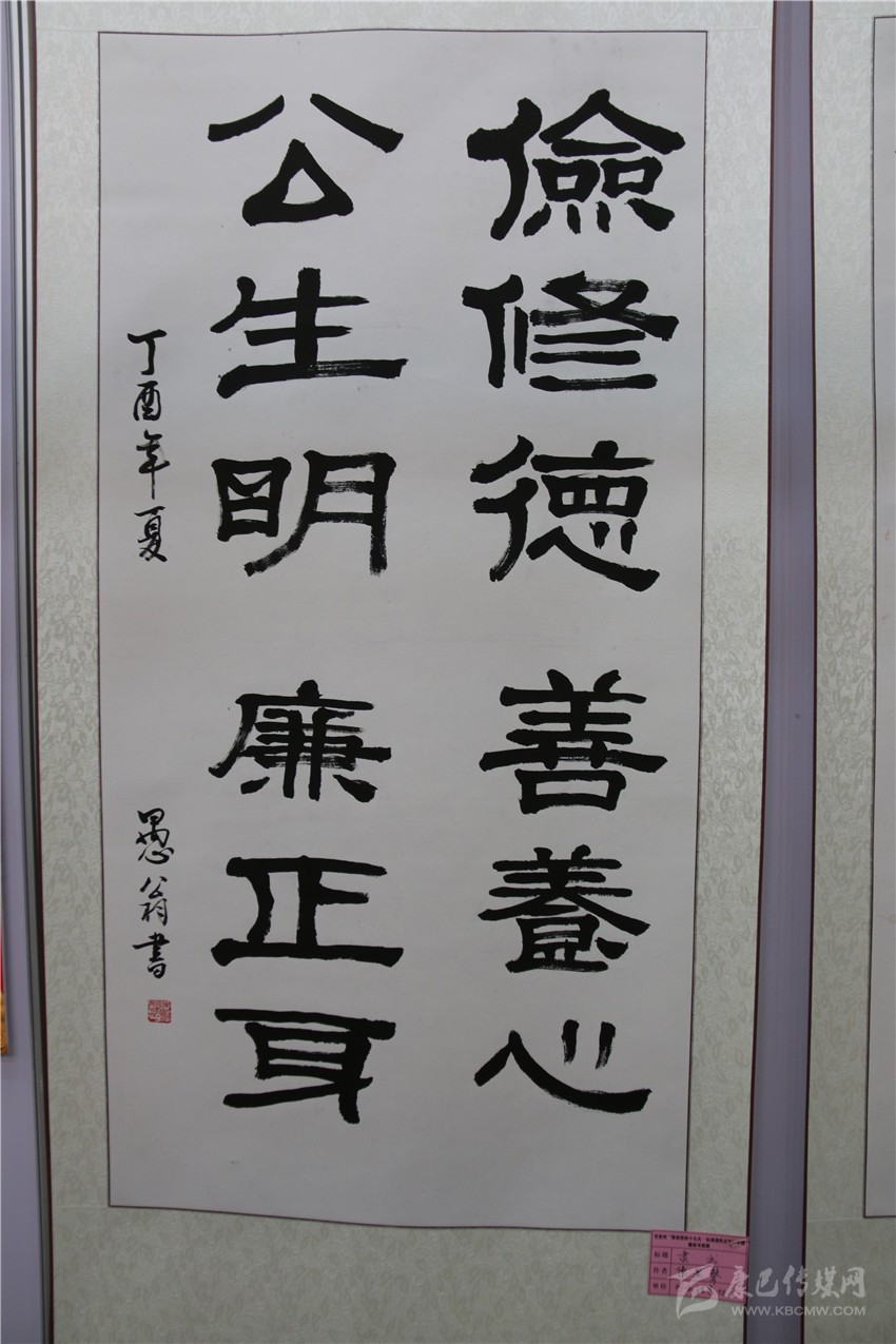 本網(wǎng)訊(記者 宋志勇 文/圖)“儉修德,善養(yǎng)心;公生明,廉正身。”“當(dāng)不住今天的誘惑將失去明天的幸福。”“清廉”..........。隸書、行草、草書等一幅幅書法作品行云流水、飛揚(yáng)灑脫。這是9月15日,由州紀(jì)委、州委宣傳部共同主辦,州直工委、州文明辦協(xié)辦的我州“喜迎黨的十九大?弘揚(yáng)清風(fēng)正氣”主題廉政書畫展在康定劇場開展時(shí),參與此次活動(dòng)的作者以各自的方式創(chuàng)作出一件件主題鮮明的精美力作,既增強(qiáng)全社會反腐倡廉意識,也營造各族人民喜迎黨的十九大的濃厚氛圍。