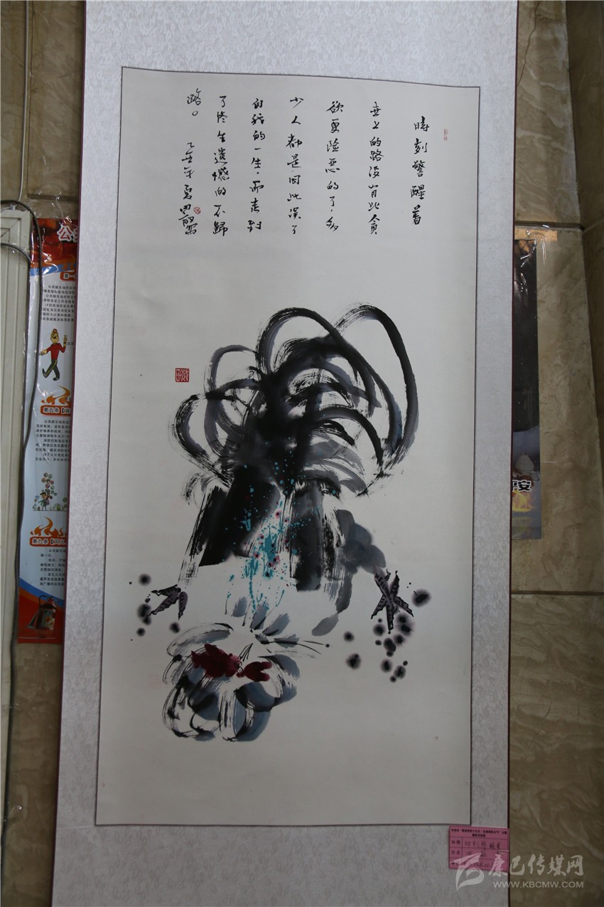 “‘松潔鶴鳴’是我親筆所繪,畫中‘松潔’表現(xiàn)的是黨員干部廉潔自律、風(fēng)清氣正的一種政治生態(tài)環(huán)境;‘鶴鳴’表現(xiàn)的是警鐘長鳴,時(shí)時(shí)刻刻向黨員干部敲敲‘鐘’?!敝堇夏甏髮W(xué)書法班今年70歲的胡鄧珠指作書畫作品興奮地說。