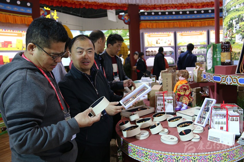 在兩天的參展中,我州展館野生的菌類(lèi)、酒類(lèi),原生態(tài)的牦牛肉、青稞,綠色的大蔥、蘿卜……五顏六色,讓人垂涎。