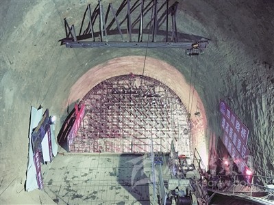 在興康大橋雅安岸,由于邊坡太陡地形無(wú)法展開,如果要建錨碇,需要大規(guī)模開山,這不僅對(duì)山體穩(wěn)定結(jié)構(gòu)造成破壞,施工成本也很高昂。因此在興康特大橋雅安岸,建設(shè)一條深入地下159米的世界第一長(zhǎng)隧道式錨碇,相當(dāng)于33層樓高,單洞開挖方量達(dá)20866立方米。