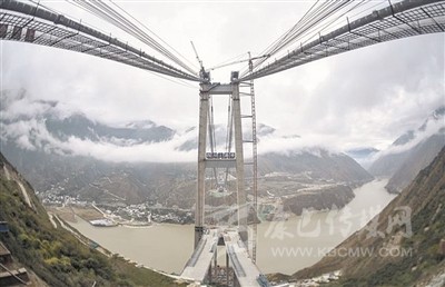 ◆川藏第一跨徑鋼桁梁懸索橋,主跨1100米