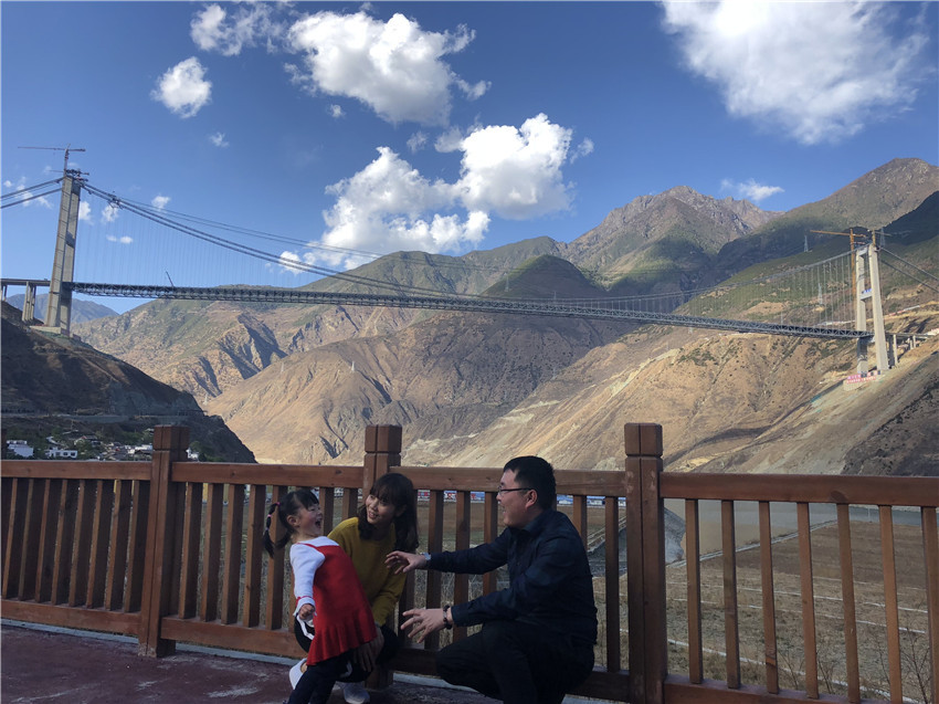 2014年大橋開建,柏國勝夫婦就把家安在了大橋旁的工地,把辛勤汗水融入這片土地,如今3歲的小孩就在當?shù)赜變簣@讀書,成為地道的“瀘定人”。