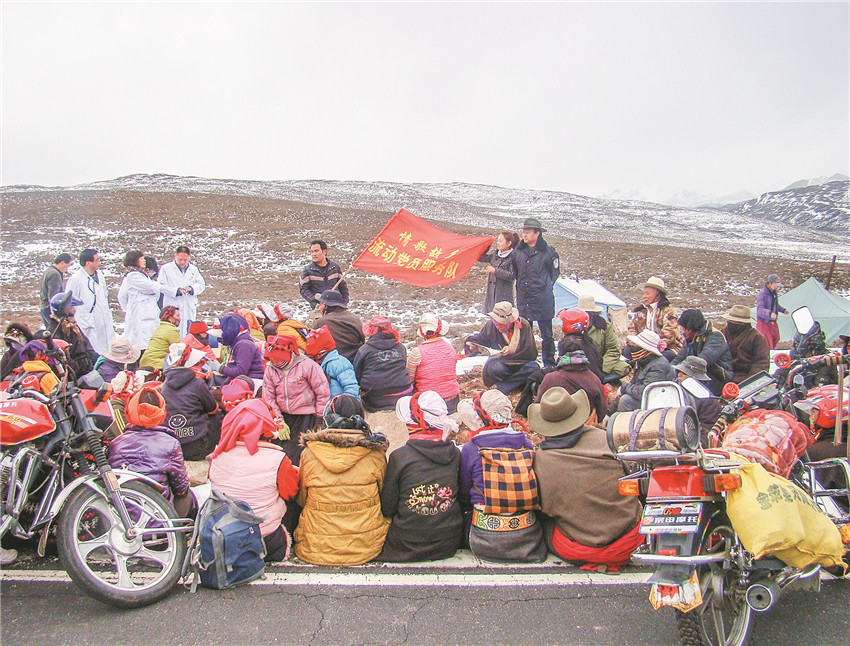 海拔四千米的蟲草山上,也有流動黨員服務(wù)隊的身影。