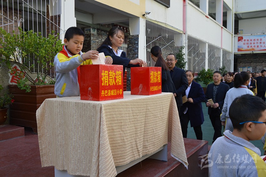丹巴縣城區(qū)小學師生踴躍捐款。