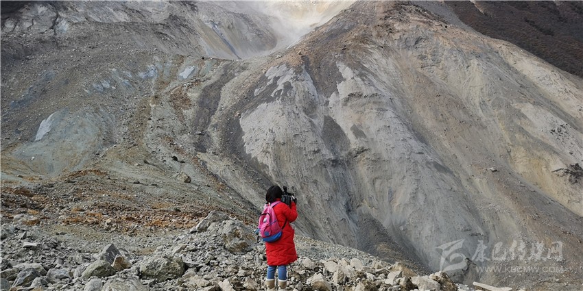 記者在堰塞湖現(xiàn)場(chǎng)拍攝。